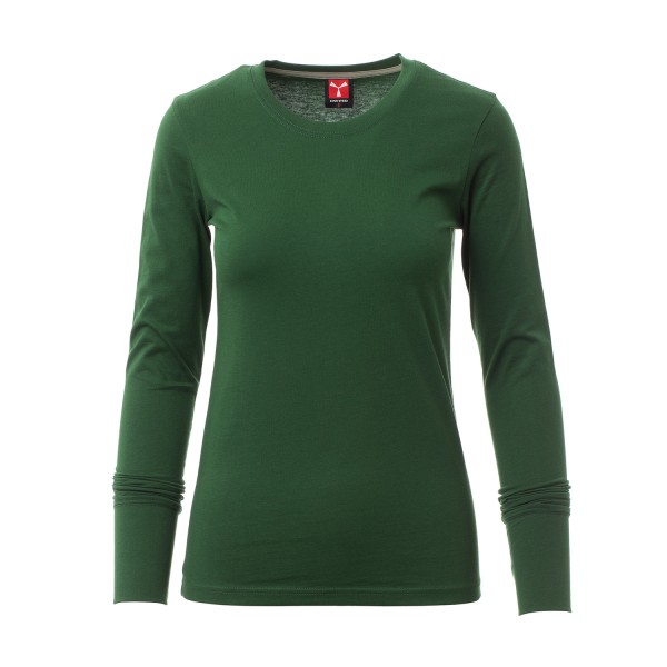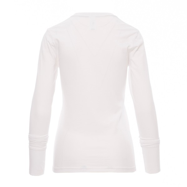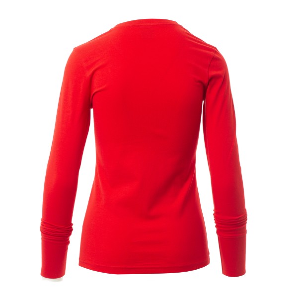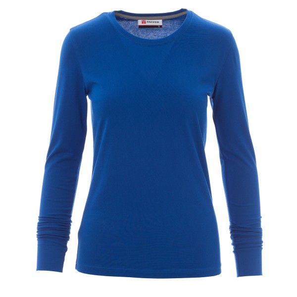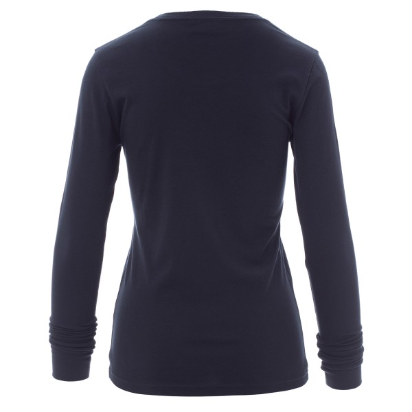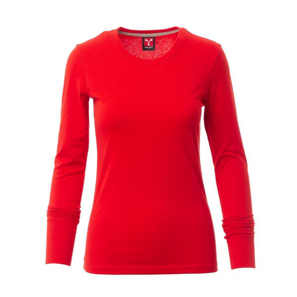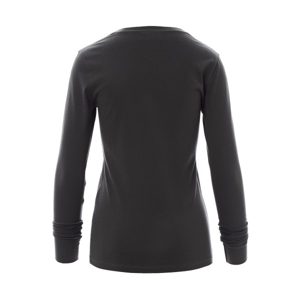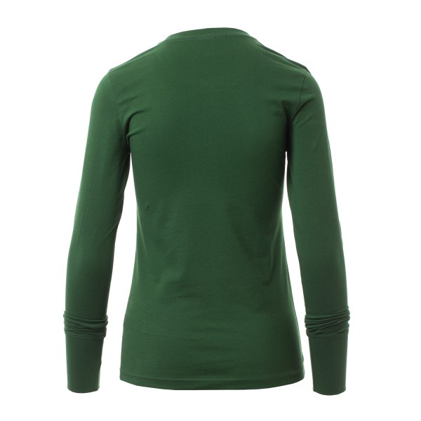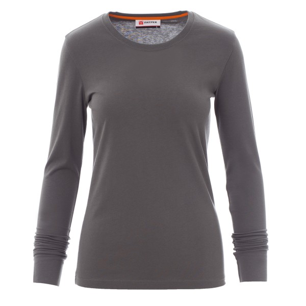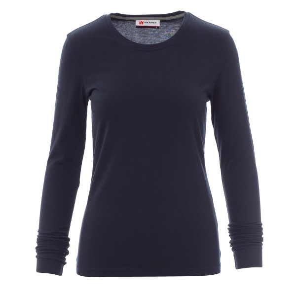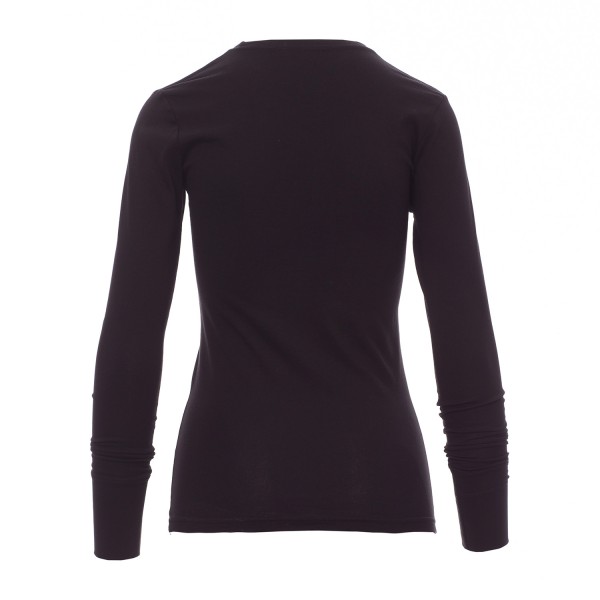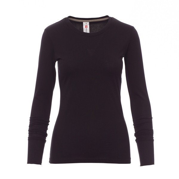 100% coton. 165g/m² encolure ras le cou et manches longues, col en bord côtes mixte spandex de 1,5 cm avec couture rabattue sur le devant, ruban de renfort d'épaule à épaule dans couleur en contraste sur le col,coutures stretch, couture latérale