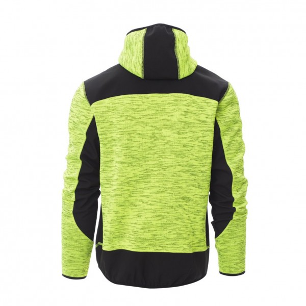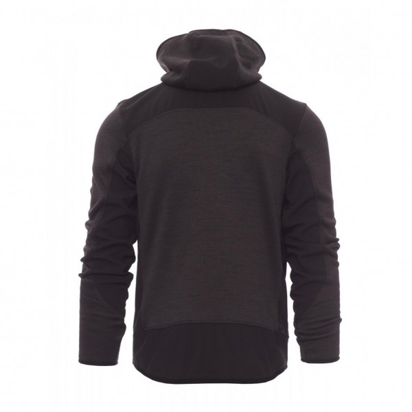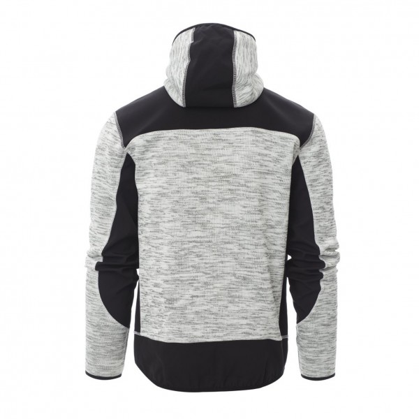 100% polyester. Tricot technique avec inserts en soft-shell noirs, bicolore, zip long SBS avec ruban, capuche profi lée avec deux coutures, fin liseré aux poignets et à la taille, deux poches latérales avec zip, une poche poitrine.